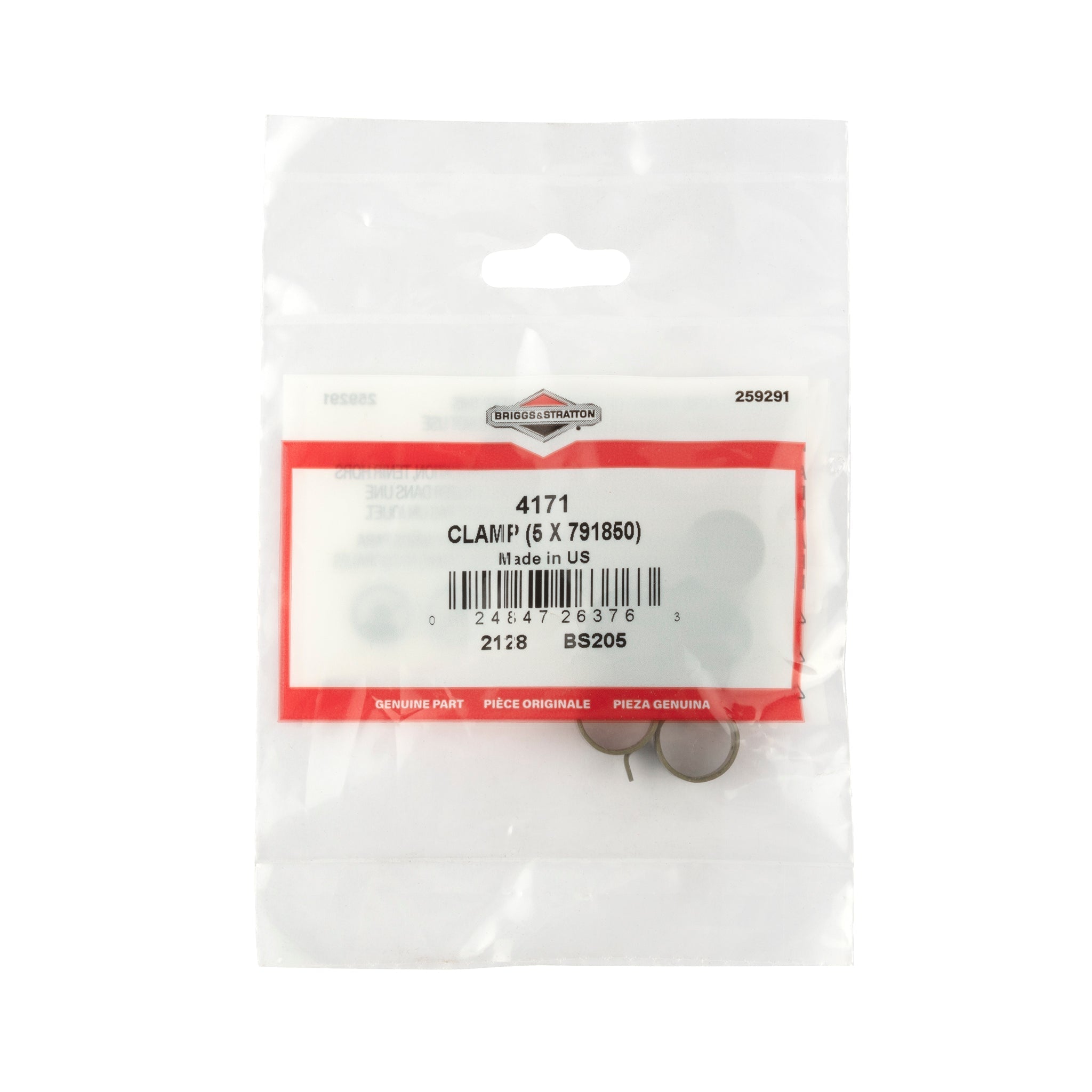 Bulk pack of 5 (791580) fuel line clamps. Used on most engines, this OEM part ensures proper fit and performance to maintain the life of your Briggs & Stratton engine. Many parts look similar, so it’s crucial to ensure you’re choosing the right replacement for your original equipment or engine model. Not sure? Use our Parts Lookup Tool to view part diagrams and find the correct replacement.